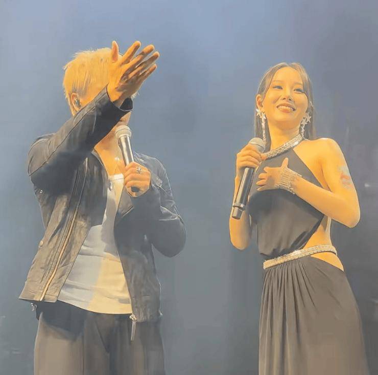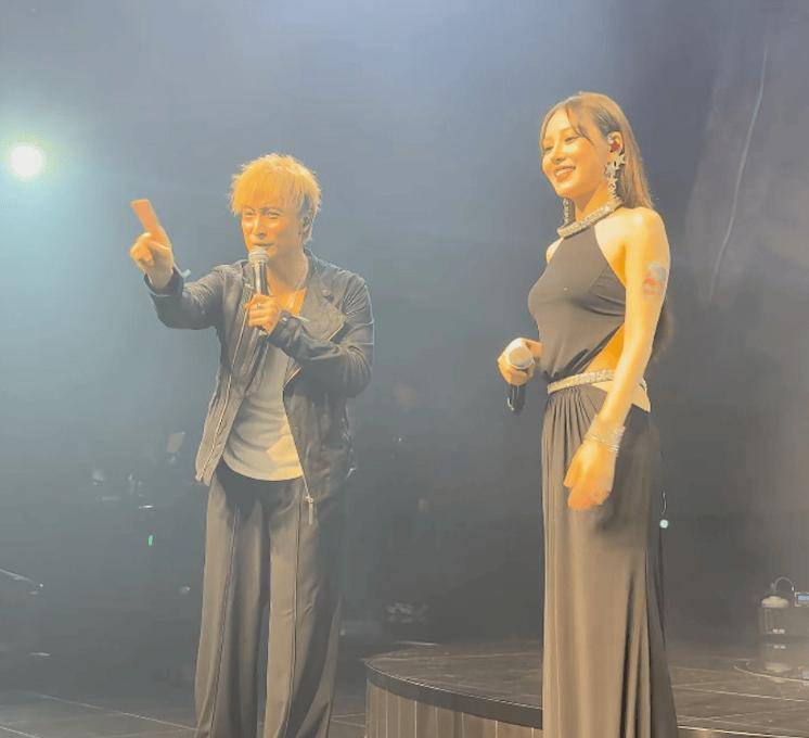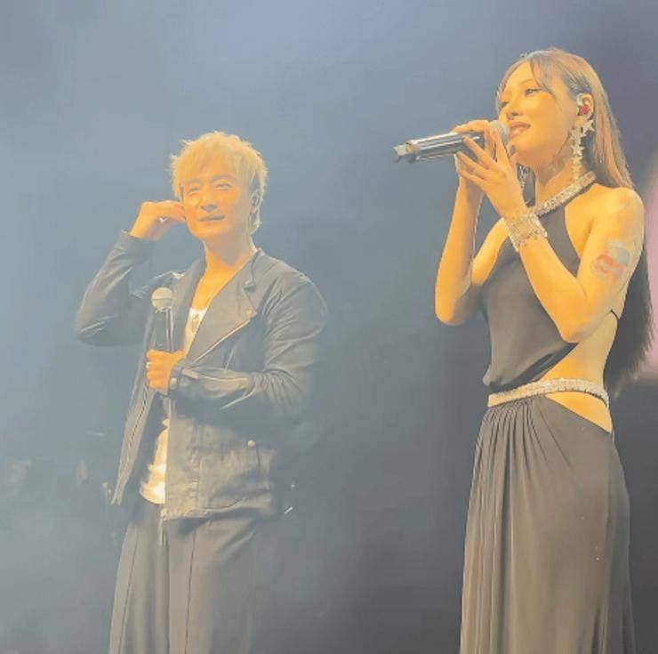 日前,有网友上传一段方力申在酒吧商演的视频,方力申在台上演唱《好心好报》,这时一位歌手上台合唱,无论发型、造型还是五官都酷似邓丽欣!加上舞台烟雾缭绕,朦胧之中看起来更像。